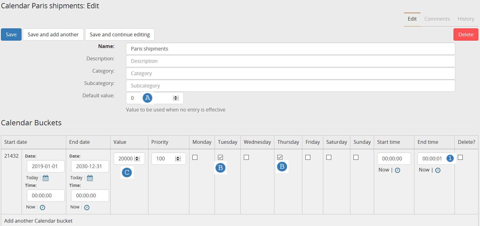 Each calendar has a default value of 0 as the availability will be modelled in the calendar bucket rows A.