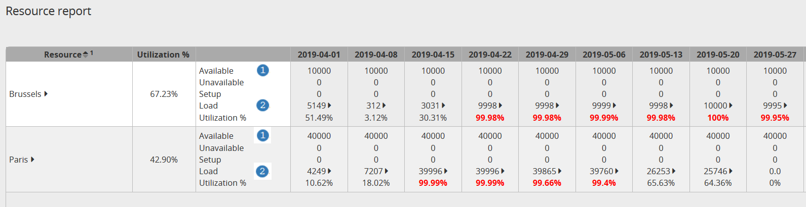 Furthermore, in the resource report, it is possible to monitor the weight that will be shipped each week for each location.