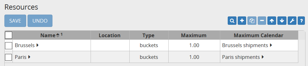 • Then create a resource of type buckets and set the corresponding calendar as maximum calendar.